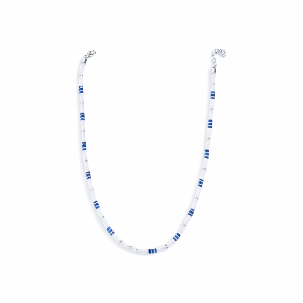 שרשרת חרוזים עדינה בגווני לבן וכחול, בעיצוב נקי ומינימליסטי בהשראת הים. קלה ונוחה לענידה, מוסיפה נגיעה רעננה לכל לוק — מושלמת לשימוש יומיומי או לשדרוג הופעה ערב. נראית נהדר לבד וגם בשילוב עם שרשראות נוספות למראה שכבות מודרני.